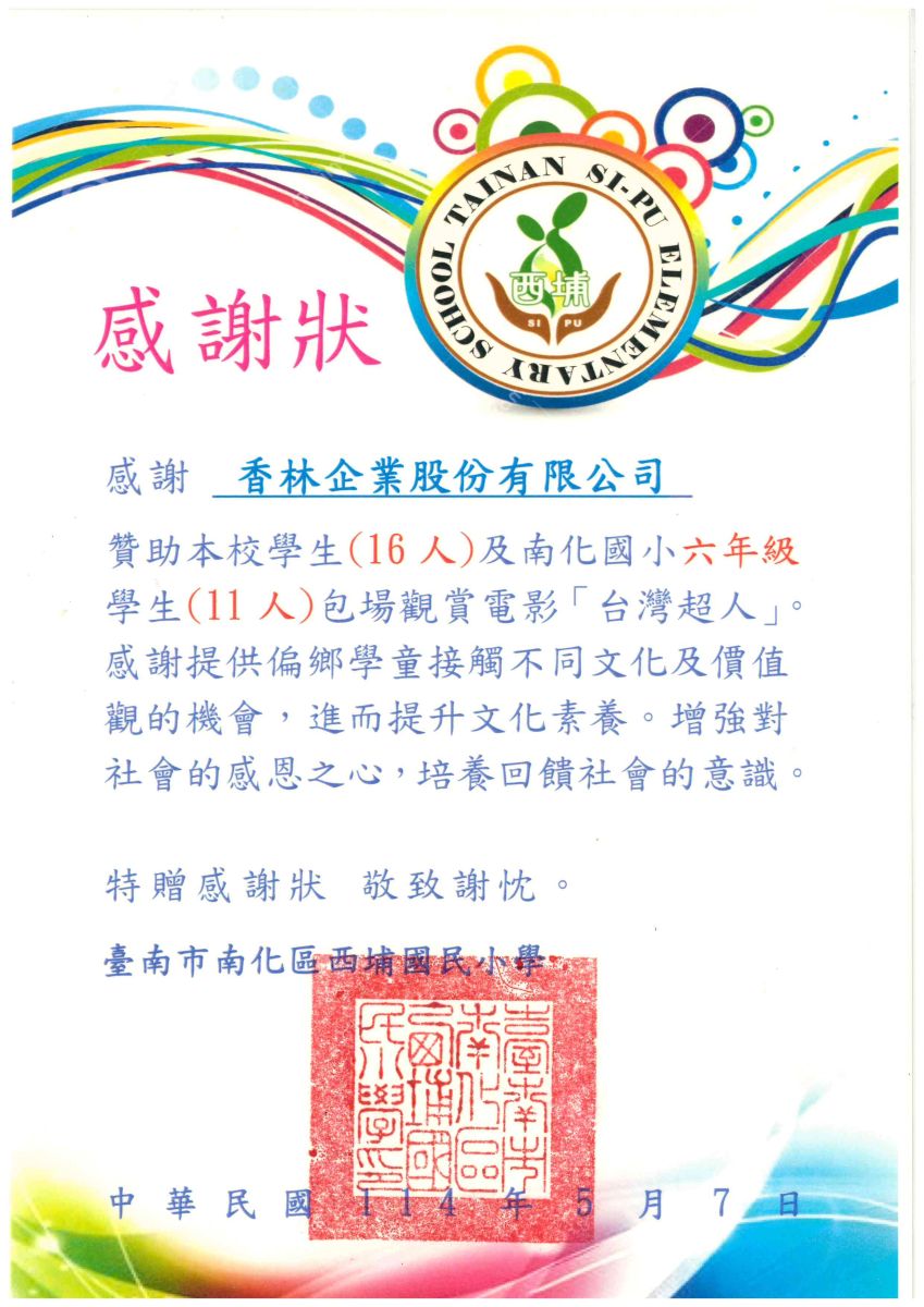 香林企業贊助台灣超人電影校園專案放映活動:台南市西埔國小